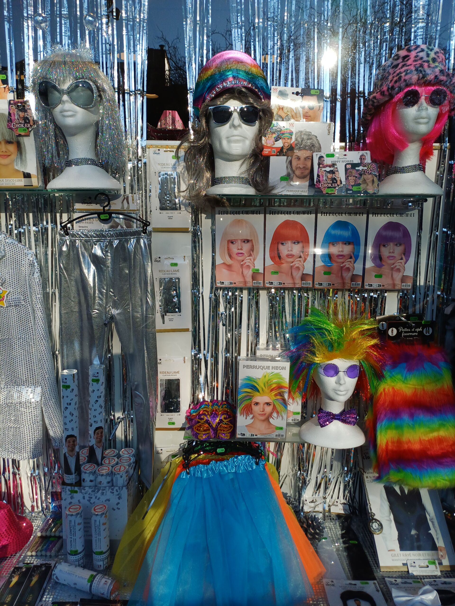 Nous vous proposons divers articles pour célébrer vos fêtes costumées : chapeaux, perruques de déguisement, feux d’artifices, ballons, masques, maquillage… Quelle que soit la thématique de votre soirée, le rêve de vous déguiser en votre héros préféré est réalisable ! Il suffit de visiter notre magasin dans le centre-ville de Rennes et de faire le choix du costume ou de l’accessoire qu’il vous faut !